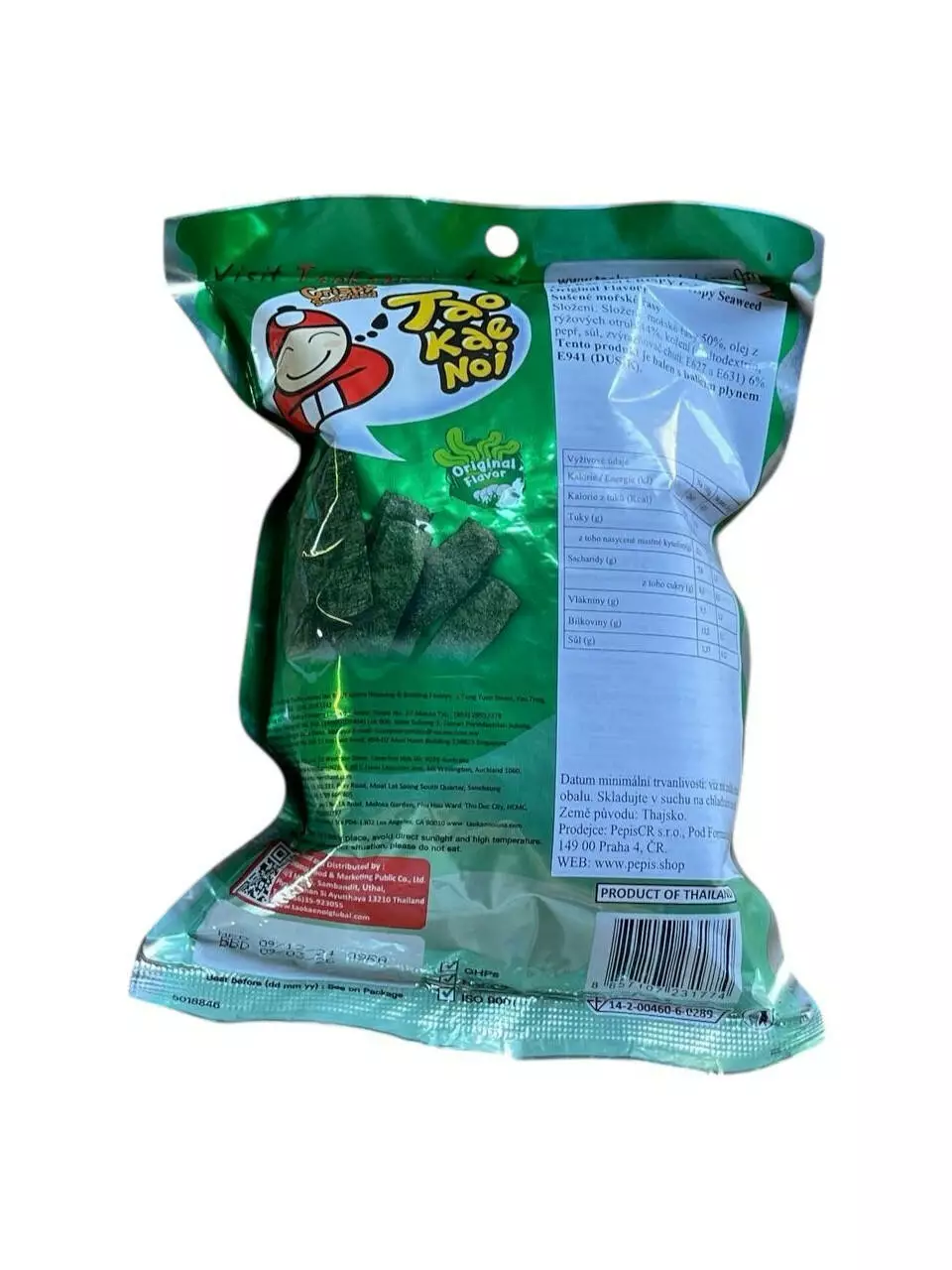 Tao Kae Noi Original – это популярный азиатский снек, покоривший весь мир. Тонкие листы морских водорослей, обжаренные до хрустящей текстуры, сохраняют натуральный вкус и аромат. Лёгкая закуска с минимальным содержанием жира станет отличной альтернативой привычным чипсам.
