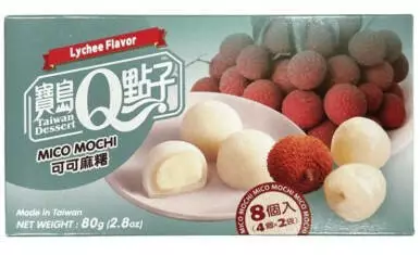 Традиционный японский десерт мочи Q Brand с оригинальной начинкой из какао и сочного личи. Нежное рисовое тесто, шоколадная нотка и тропическая сладость личи создают гармоничное лакомство для любителей азиатских сладостей.