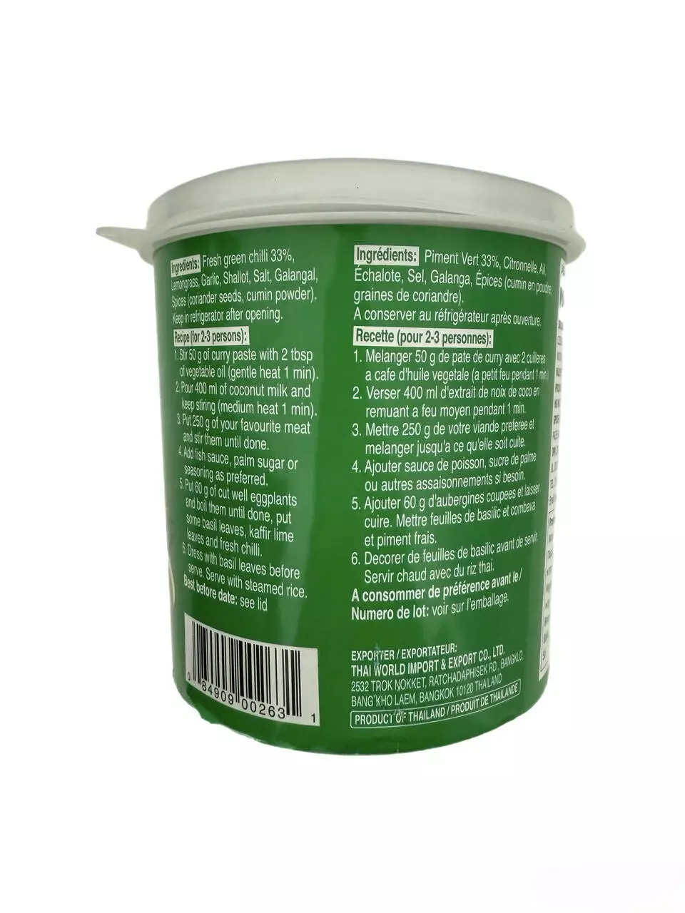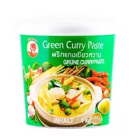 Класична зеленая паста карри (Green Curry Paste) от Cock Brand обладает насыщенным ароматом зеленого чили, лемонграсса, чеснока, лука-шалота и специй. Она станет идеальной основой для тайских супов, карри, соусов, маринадов и блюд в вок.