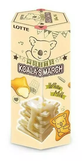 Lotte Koala’s March White Cream Cheese — оригинальное японско-корейское печенье в форме забавных коал с нежной молочно-сырной начинкой. Хрустящее тесто и сливочный крем создают сбалансированный вкус, который понравится и детям, и взрослым.
