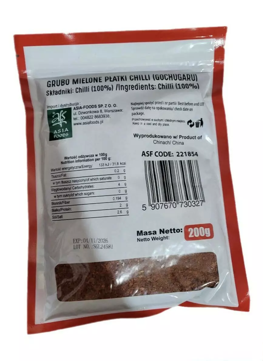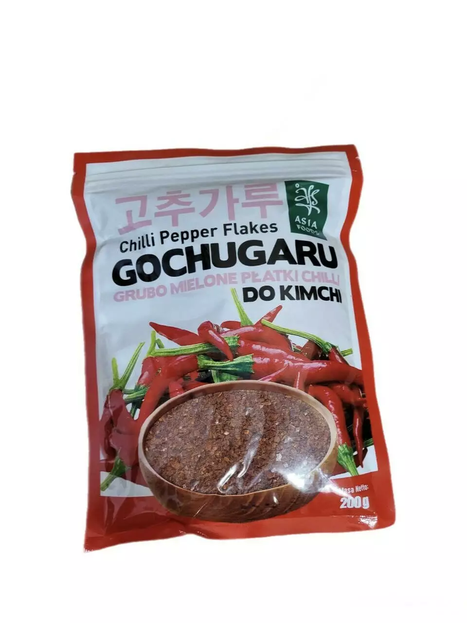 Традиционный корейский красный перец Gochugaru Asia-Foods — незаменимая приправа для приготовления кимчи, супов, соусов и маринадов. Обладает насыщенным ароматом, ярким цветом и умеренной остротой. Упаковка 200 г идеально подходит для домашнего использования.